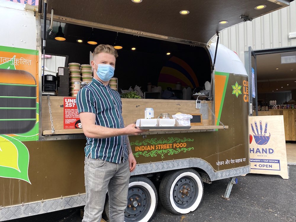 Our much-loved street food trailer has found a new home – outside Kemptown brewing legends Hand Brew Co's shiny new Taproom & Brewery in West Worthing. From Wednesday to Sunday each week, we serve up a menu of South Indian street food, wraps, curries, two-course tiffin meals and (of course) craft beer, which can be enjoyed in the Taproom, in the brewery’s new outdoor drinking/dining area, or ordered for home delivery/collection.